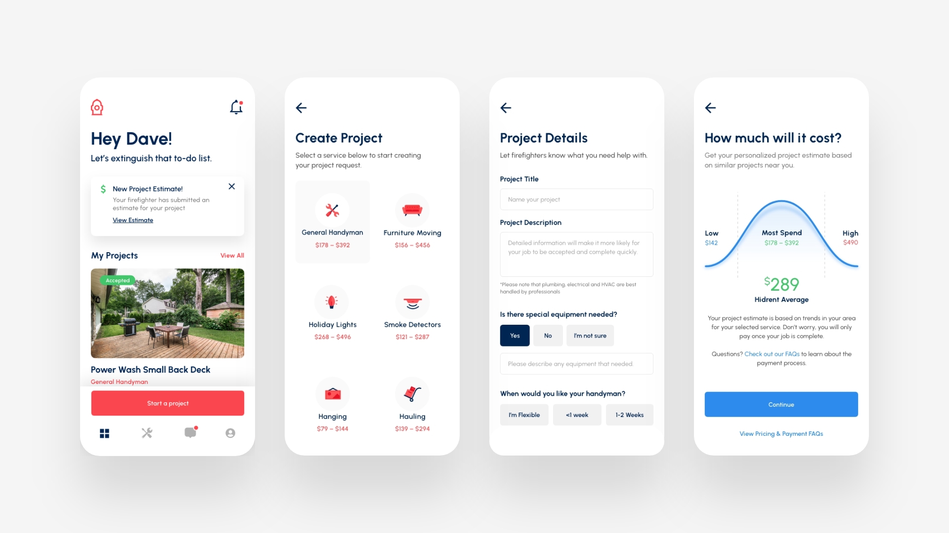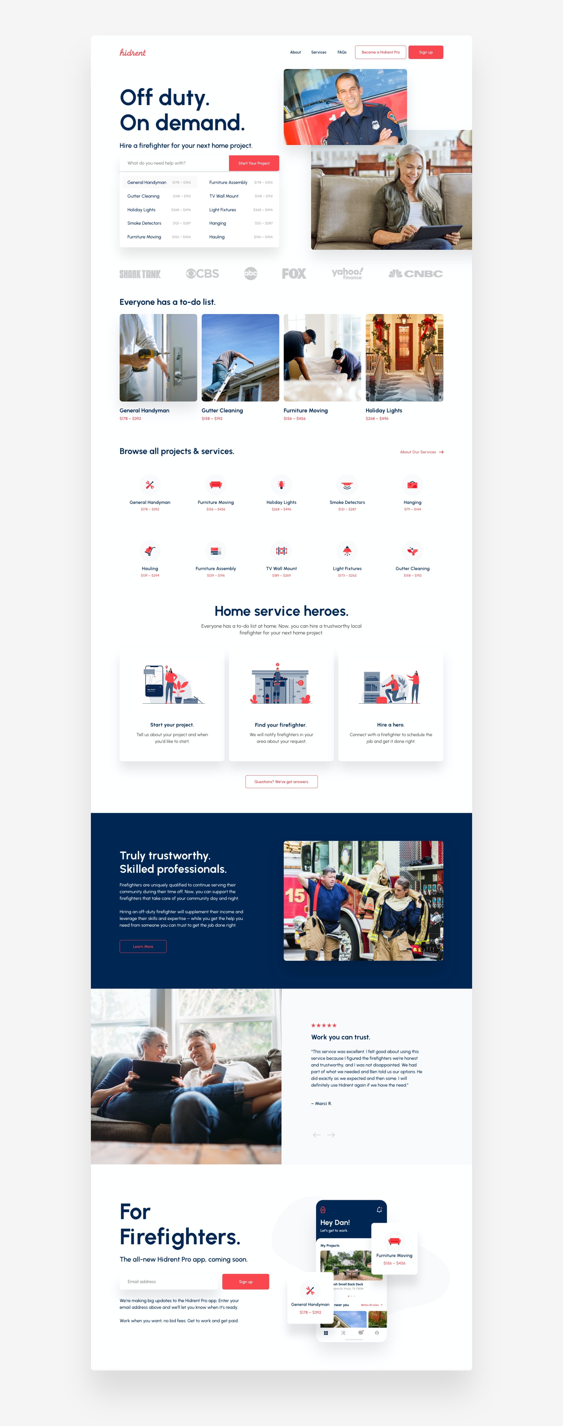 Hidrent is a gig-labor app connecting homeowners in need with off-duty firefighters to complete a variety of tasks around the house or business.