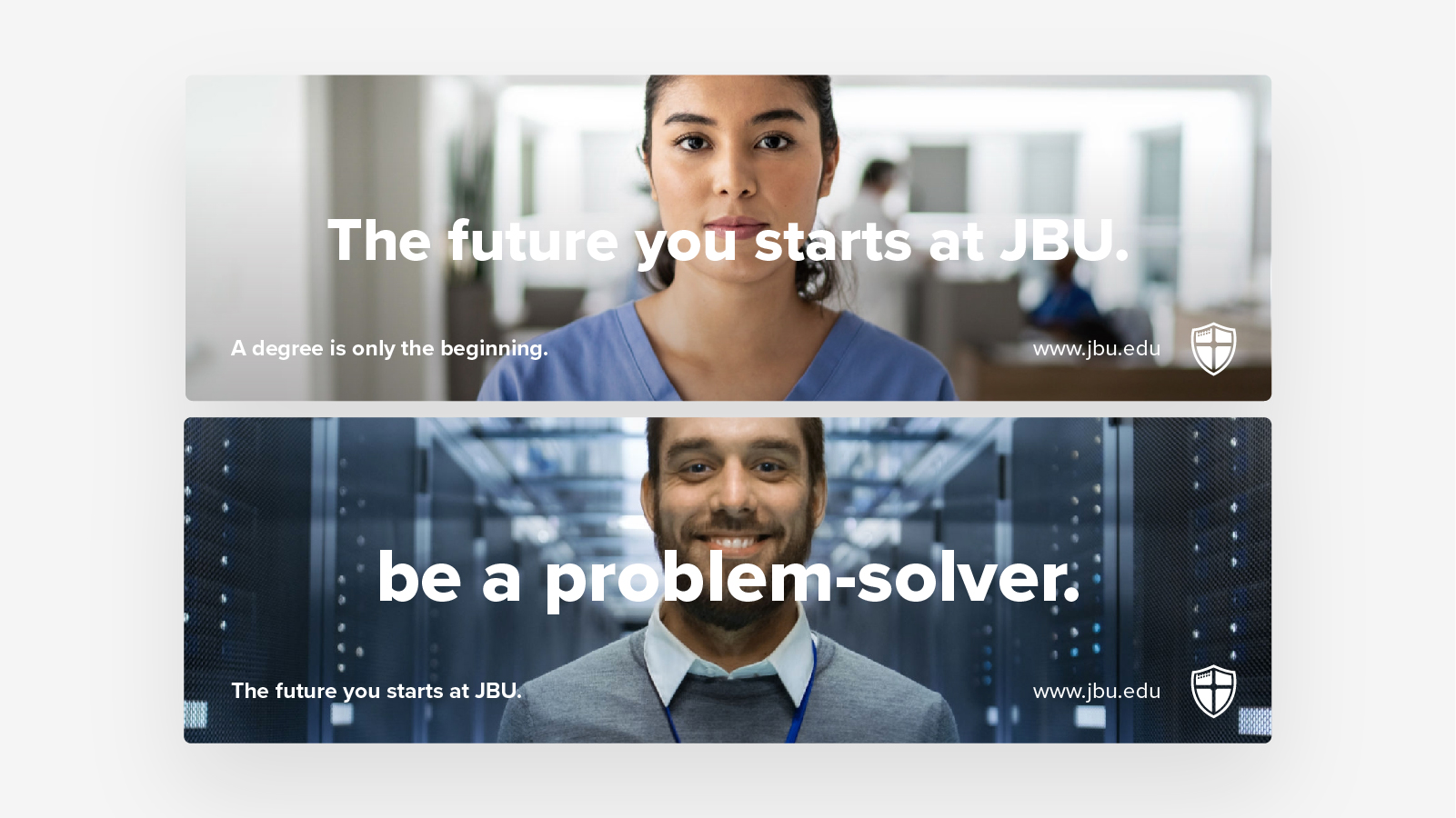 We delivered assets and guidelines for the university staff to execute the campaign across multiple channels, and we also had the opportunity to design the front-end of a new JBU website that is currently in development.