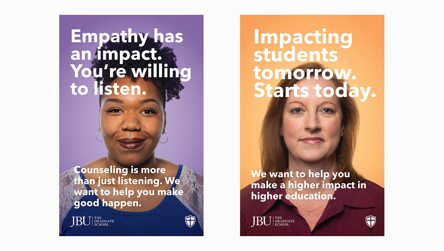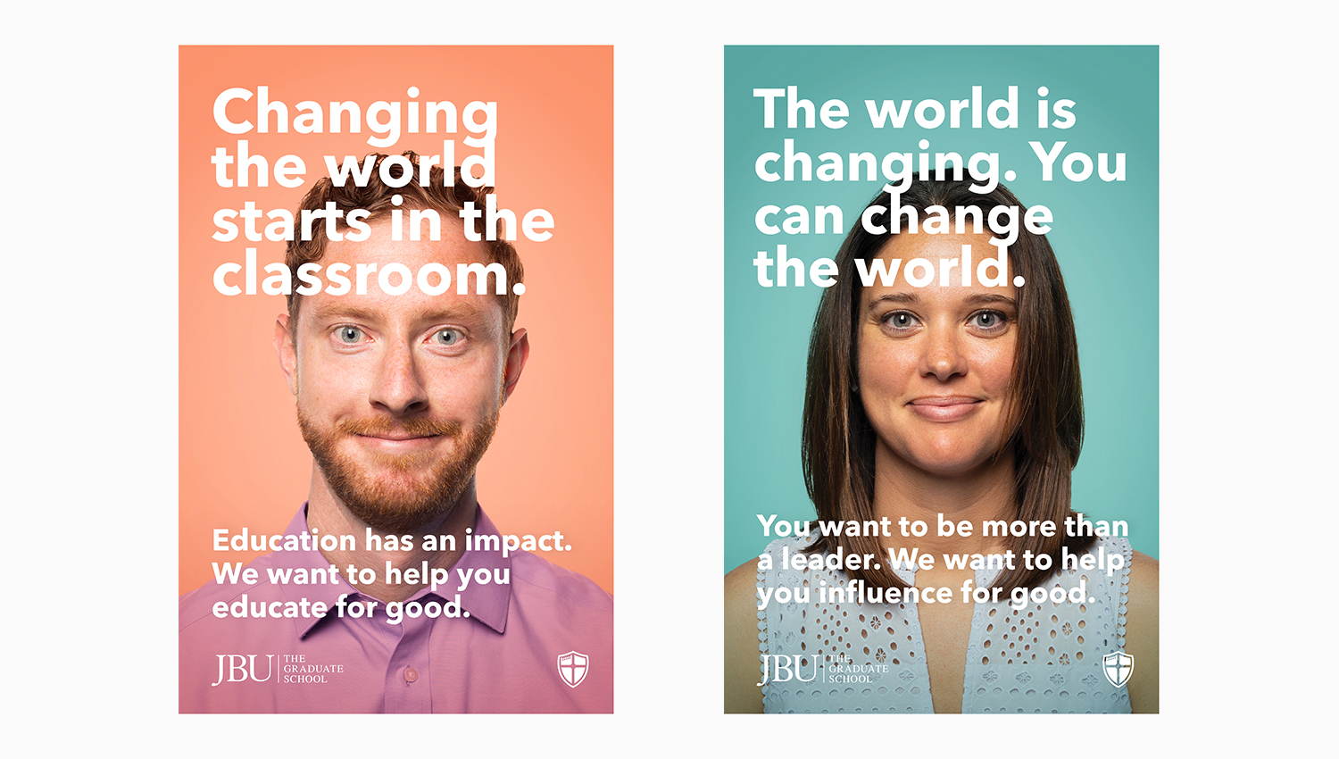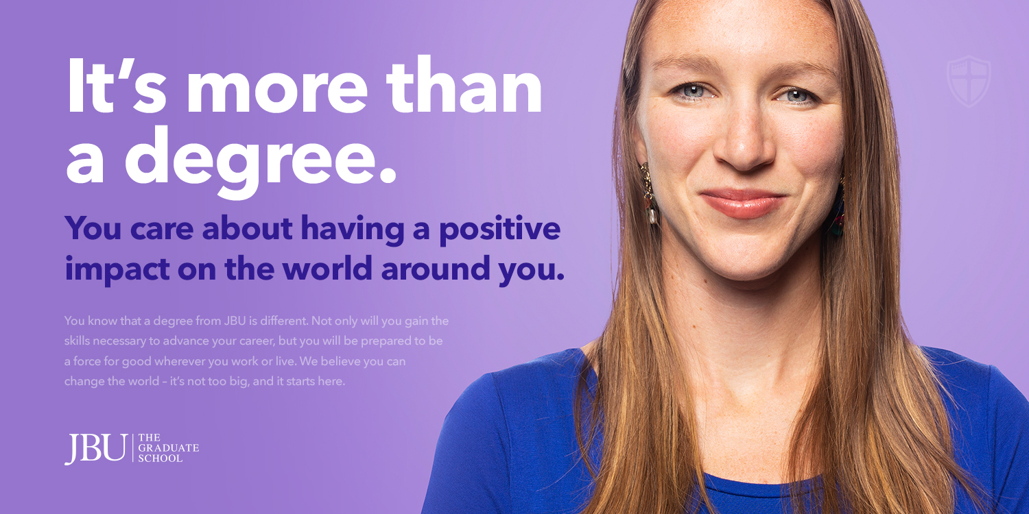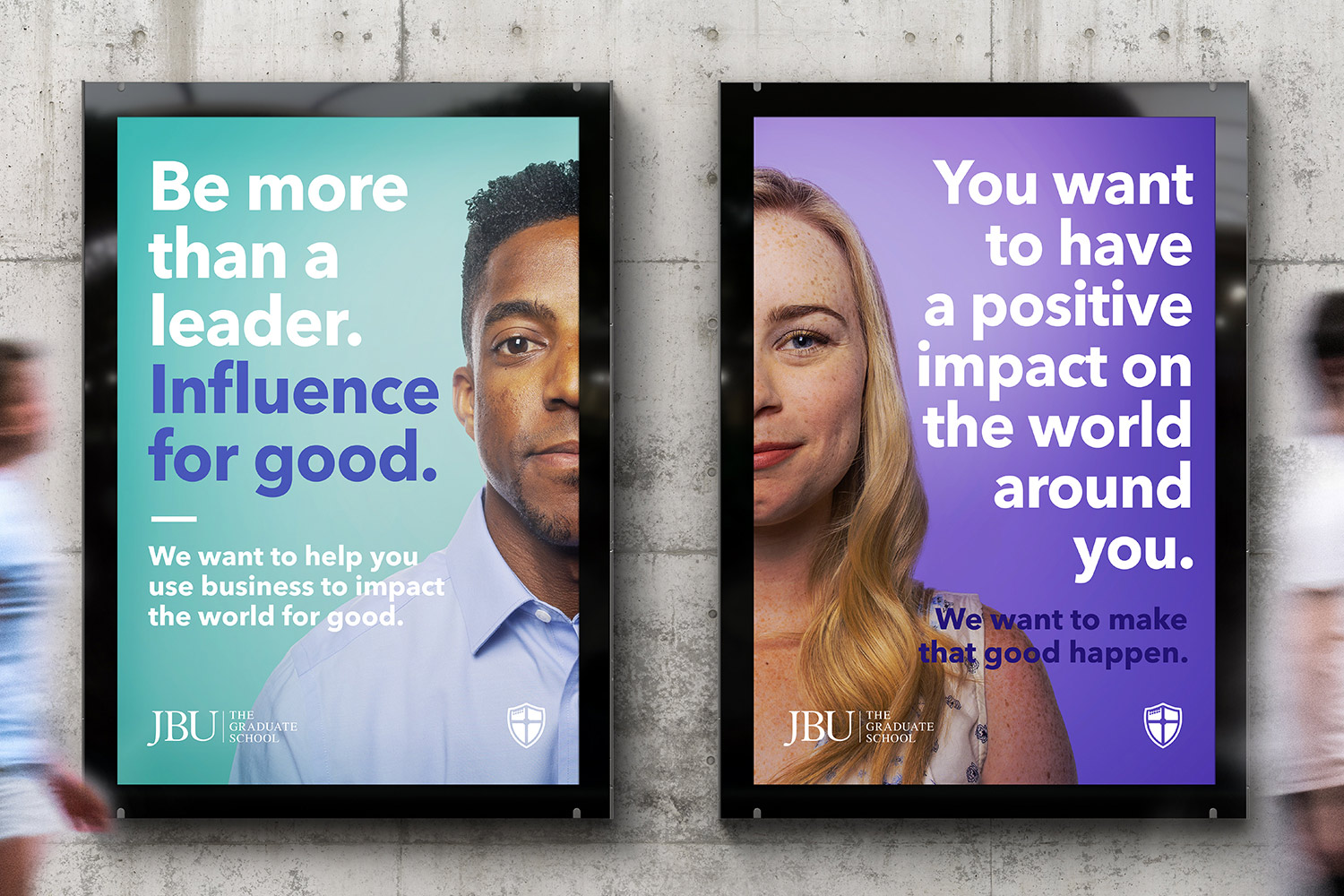 We joined with JBU to create a campaign around a simple value proposition — a JBU degree is a degree for good. That is, a JBU master’s degree equips you not only for career advancement, but also to make the world around you a better place.