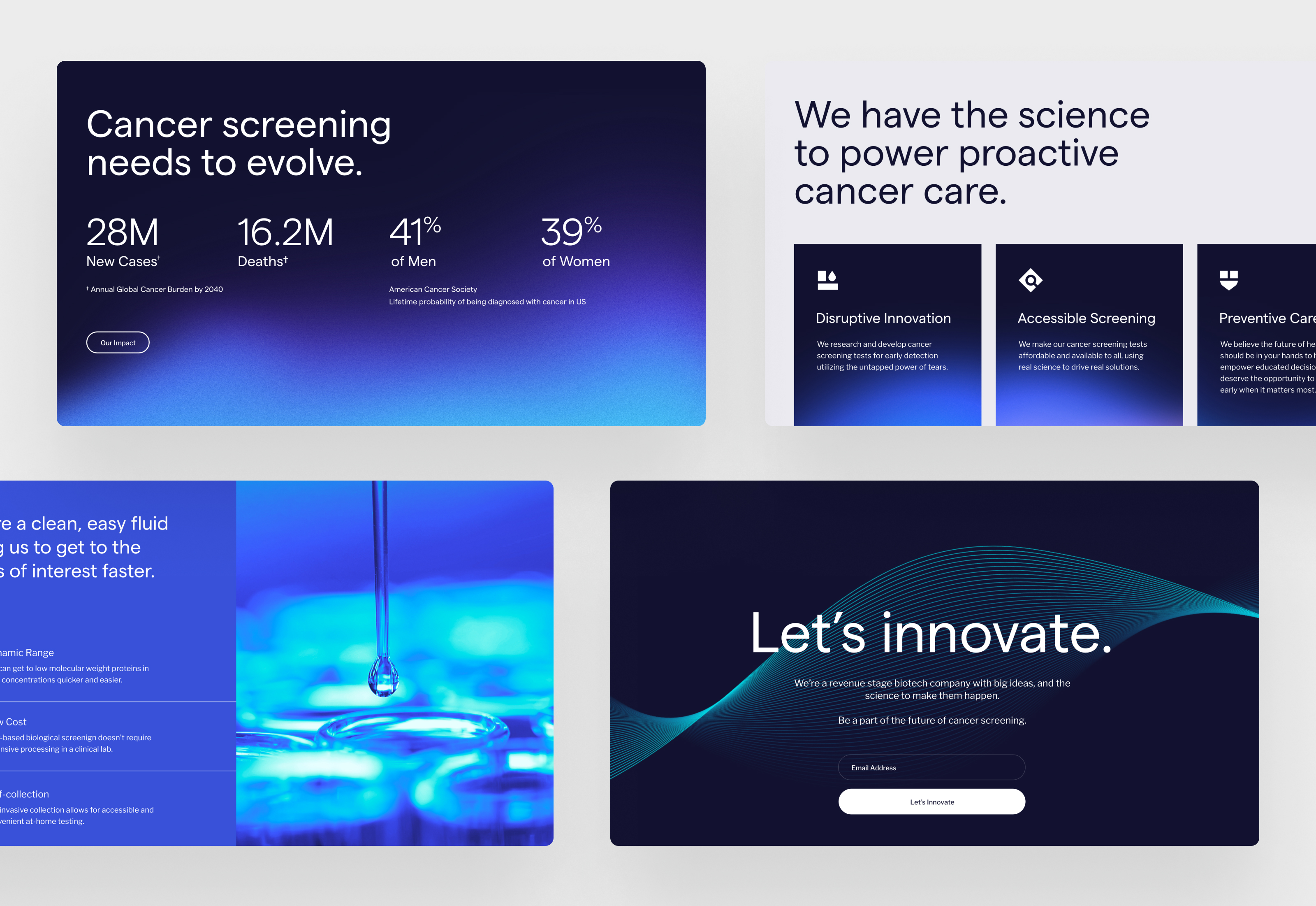 We partnered with Namida to develop a focused strategy, messaging, and identity to visualize their ambitious vision and capture the innovative science of tear protemoics powering it all. The identity is lead by an organic, mobius logo mark, representing the unique folding tear proteins that are powering the future of proactive cancer screening.