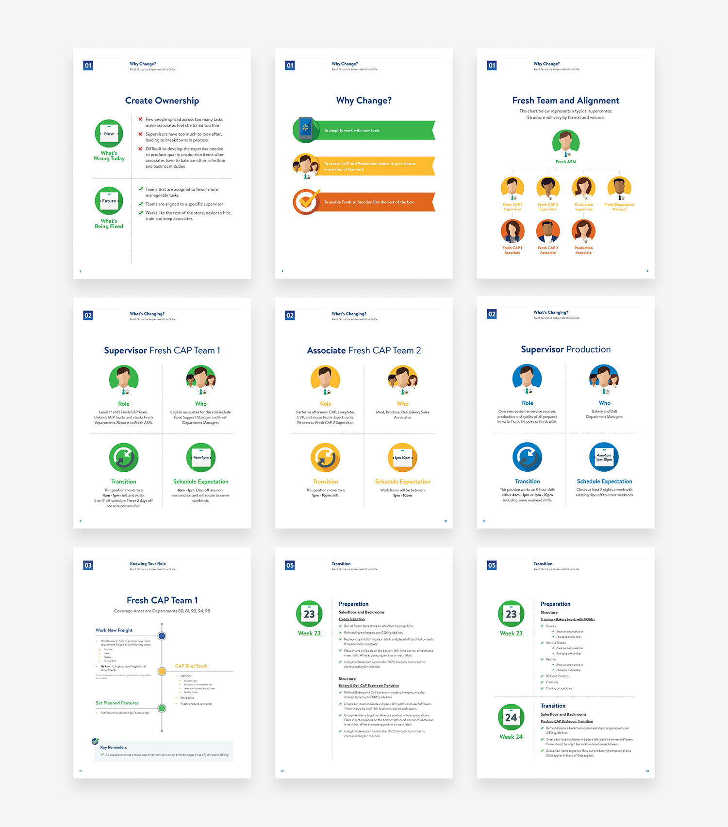 In addition to campaign related work, there is also the task of clear and accurate implementation of tactical and process changes. How do you communicate a complex process or significant change in a longstanding process in ways that not only provide the right information but create quick and easy follow through? Much of our design work within key Walmart process rollouts has allowed us to create highly visual and graphics-based materials that minimize content to make key training materials both visually appealing and easy to understand.